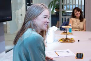 Se desarrolla a primera hora de la mañana en las oficinas de una compañía farmacéutica colaboradora de Mujeres en Farma y dura dos horas.